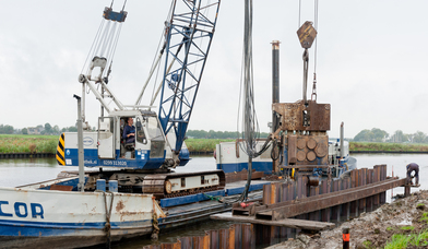 Waterbouw Land in zicht met stalen damwand