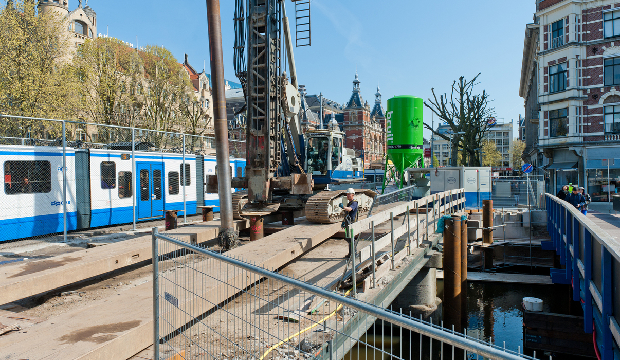 Naast het Leidseplein voert Van ’t Hek het funderingswerk uit voor de renovatie van de Leidsebrug. In het werk staat het minimaliseren van hinder en overlast voorop, o.a. door het inbrengen van trillingsvrije paaltypes en het aanvoeren van materialen over het water. Een echt Van ’t Hek werk!