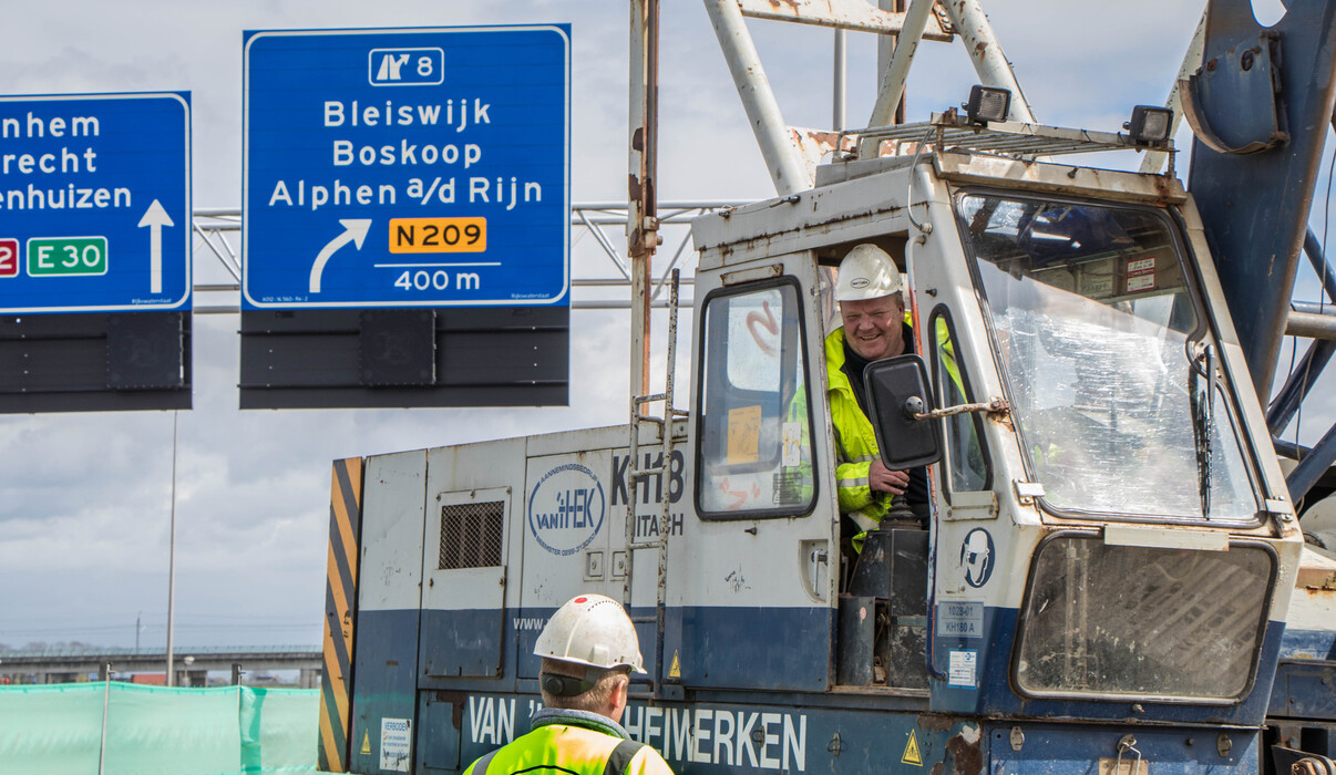 In opdracht van Aannemingsmaatschappij Vobi werkt Van ’t Hek mee aan de bouw van een viaduct over de snelweg (A12) en het spoor.