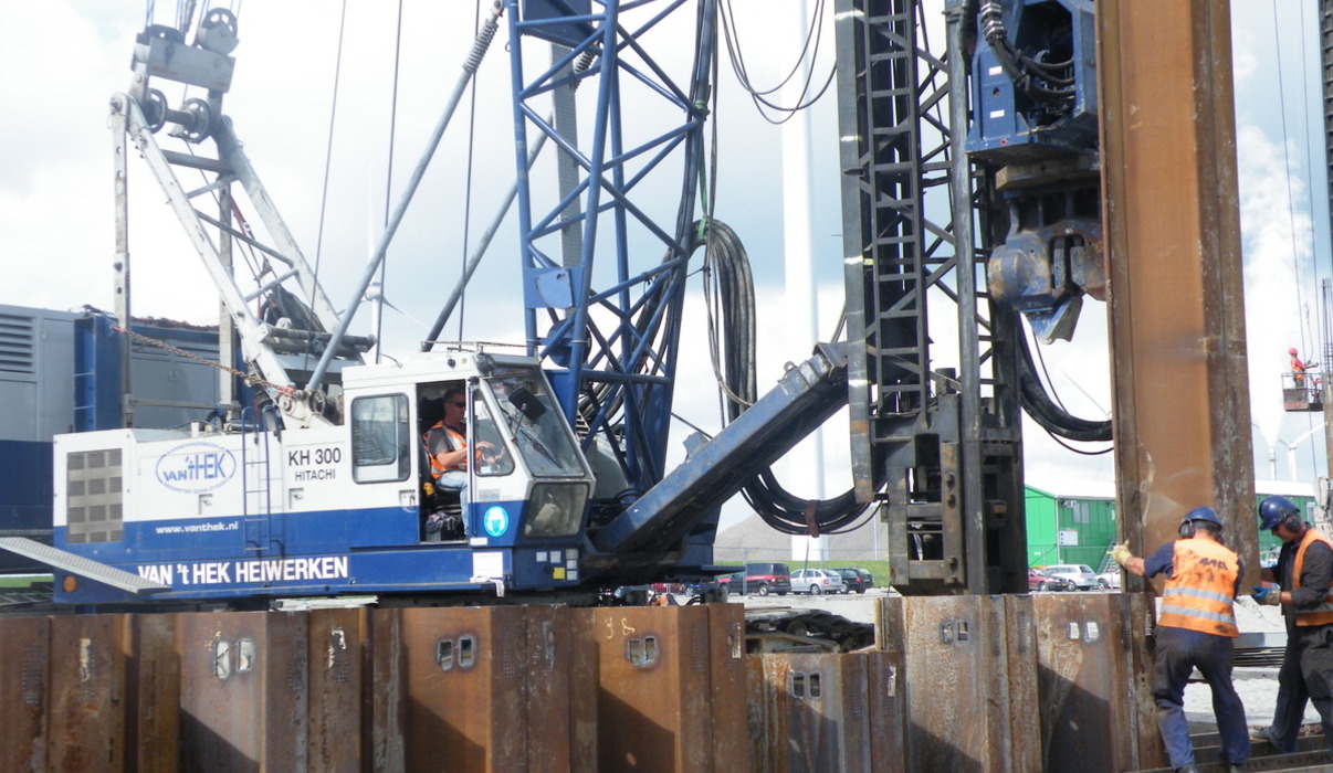 In opdracht van de Visser & Smit en het Duitse bouwbedrijf Mainka heeft Gebr. van ’t Hek stalen damwanden tot 31 meter lang aangebracht in de Eemshaven voor een nieuw te bouwen kolengestookte energiecentrale.