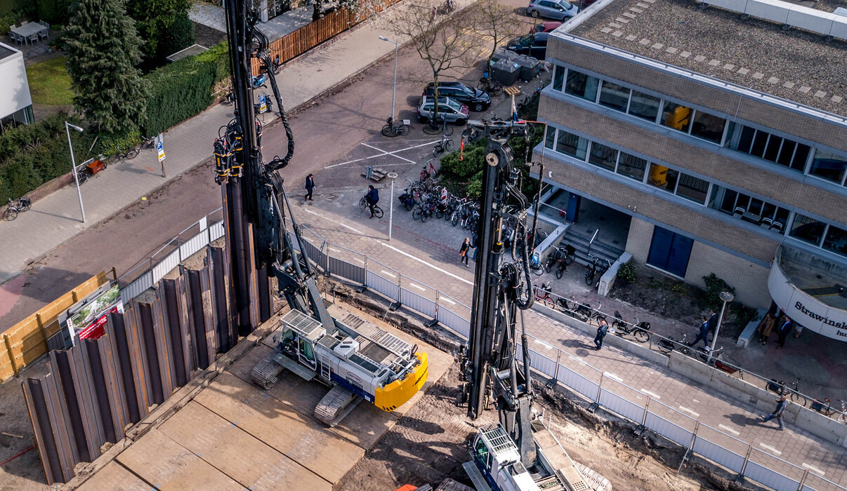 In opdracht van Van Boekel Zeeland voert Van ’t Hek de benodigde funderingswerkzaamheden uit. Het gaat hierbij om het indrukken van ca. 300 m1 stalen damwand, diverse stempelconstructies en het aanbrengen van ca. 200 schroef-combi-palen. Een prachtig werk op een uitdagende locatie. Om de overlast tijdens het funderen zoveel mogelijk te beperken, worden de stalen damwanden trillingsvrij aangebracht. De funderingspalen (type HEK-combi) worden daarbij trillingsvrij ingeschroefd.