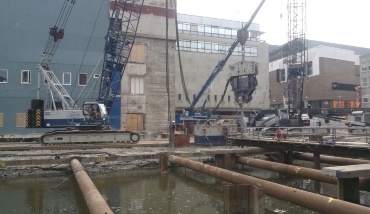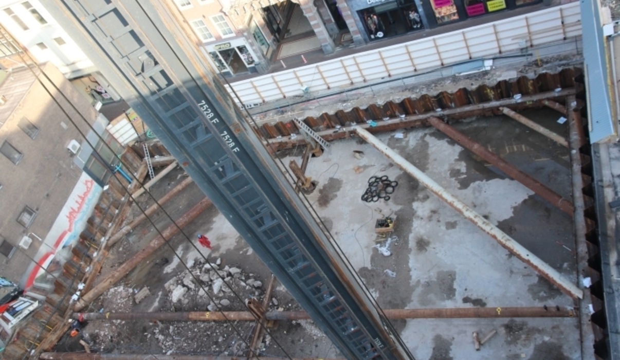 Allereerst zijn door Gebr. van 't Hek in de bestaande kelder stalen jukken en gordingen aangebracht. Vervolgens is door Gebr. van 't Hek trillingsvrij stalen damwand ingedrukt, gedeeltelijk door (een sleuf van) de bestaande keldervloer heen.
