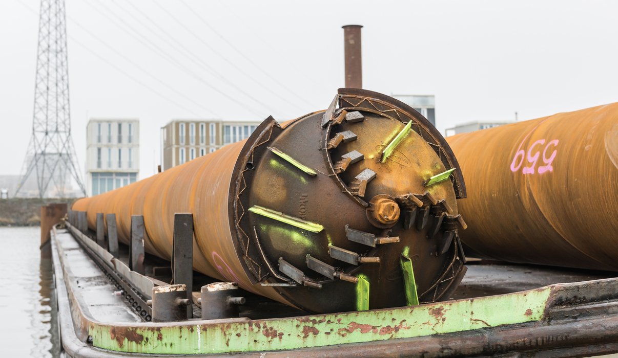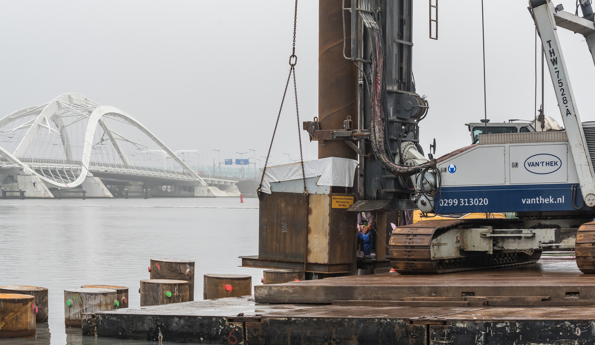 Voor de fundering installeert Van ’t Hek maar liefst 714 prefab betonpalen en 96 HEK buispalen Ø864 tot wel 62,5m lang.