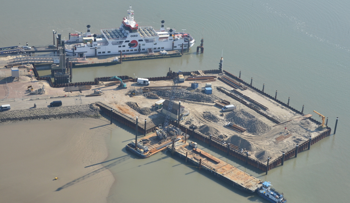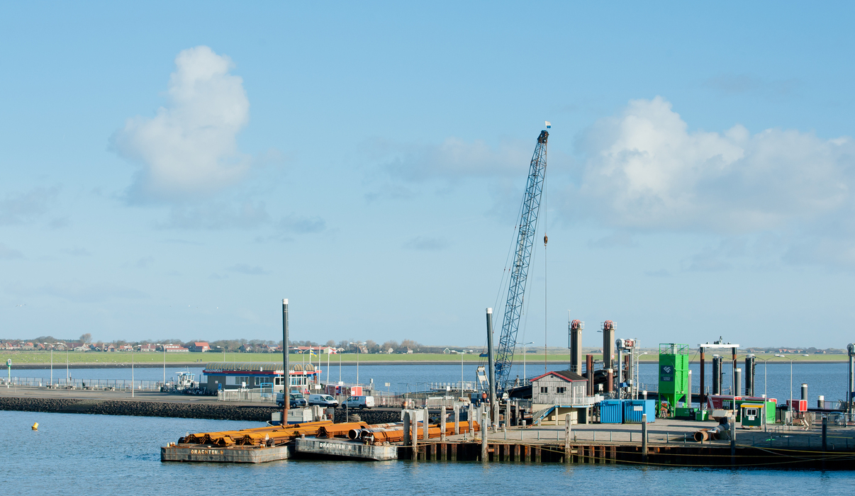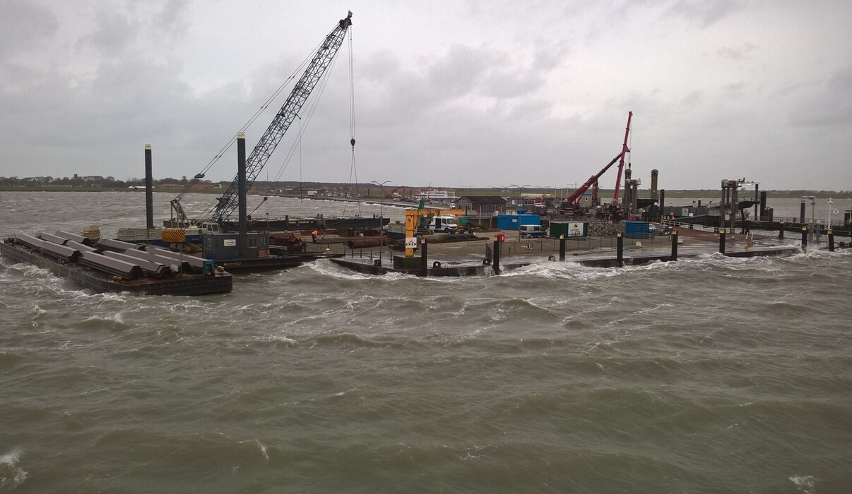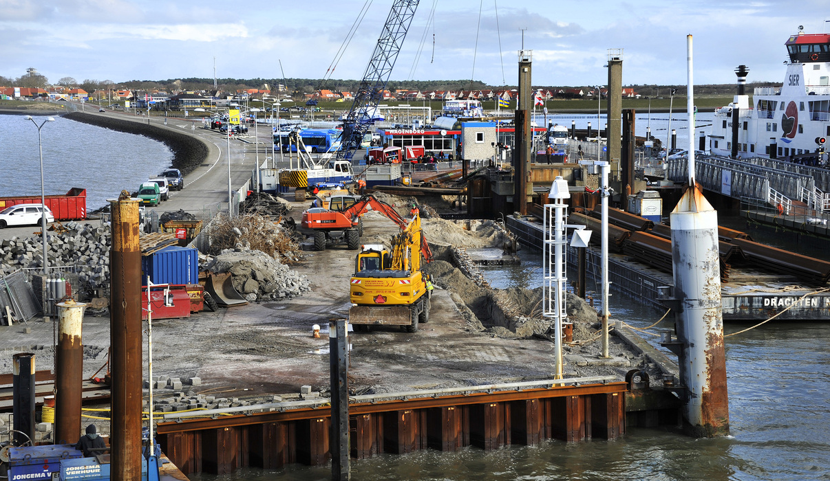 In opdracht van Van den Herik werkt Gebr. van ’t Hek aan de reconstructie van de veerdam te Ameland.
