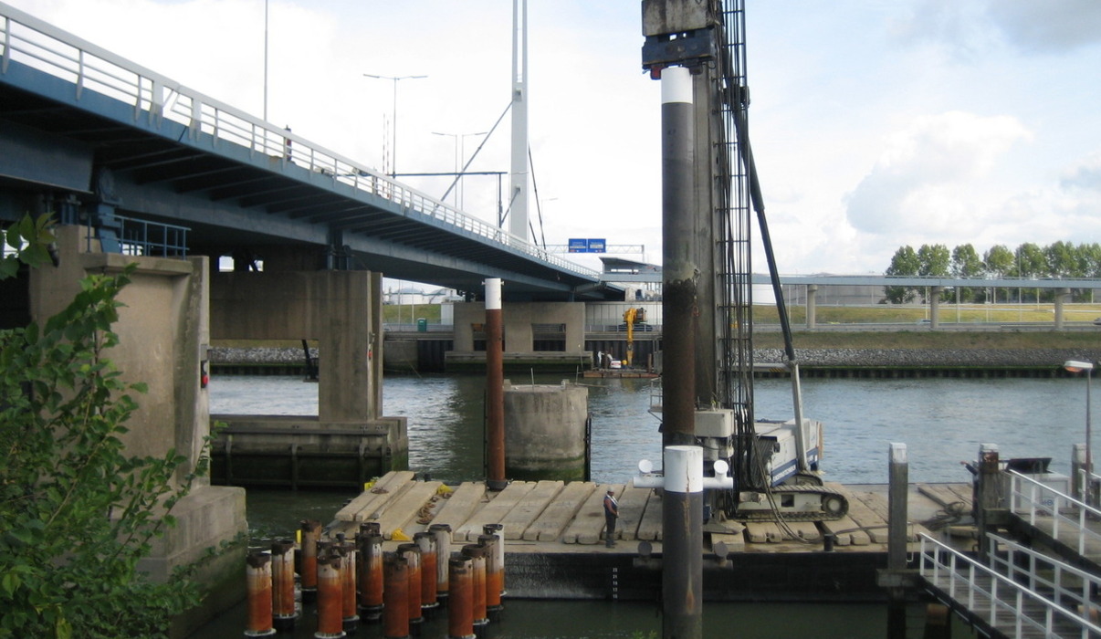Om de fundering voor de pijlers van de fietsbrug te realiseren, zijn door Gebr. van ’t Hek HEK-buispalen tot 30 meter lang en onder diverse schoorstanden geboord met groutinjectie. Waar mogelijk zijn ook buispalen geheid.