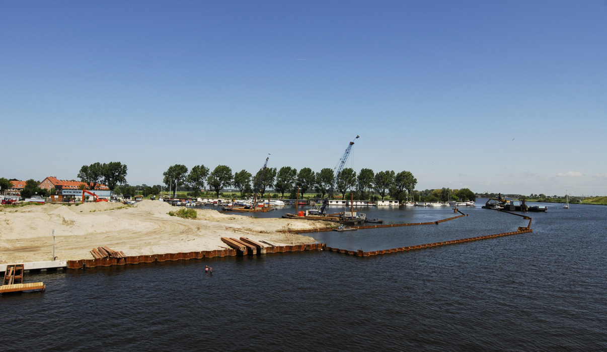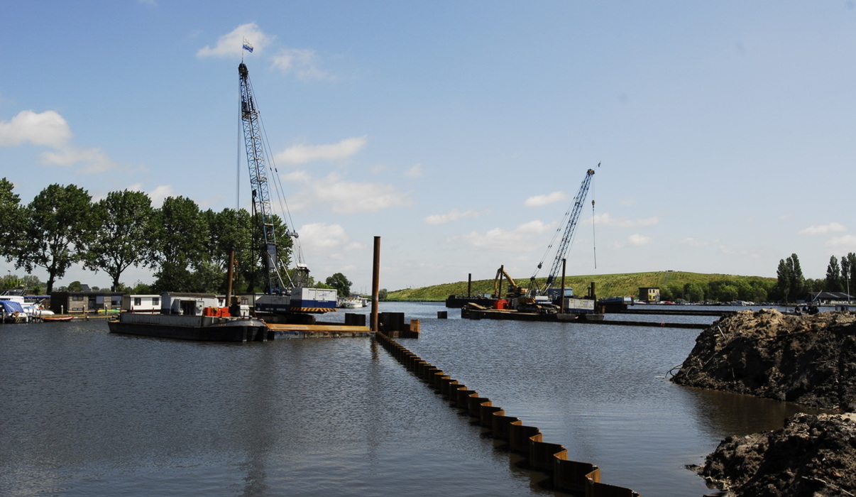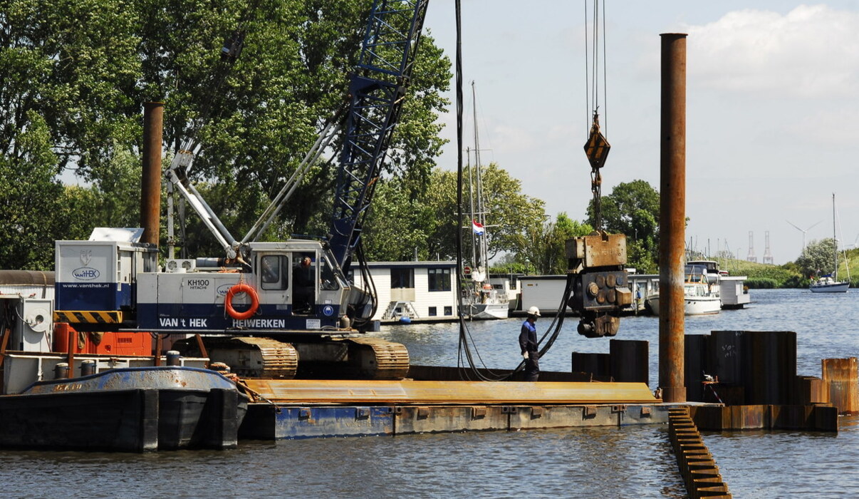 Voor dit project installeert Gebr. van 't Hek vanaf twee pontonsets een kilometer strekkende stalen damwand als definitieve grondkering voor de te realiseren schiereilanden zodat vervolgens de woningen kunnen worden gebouwd.