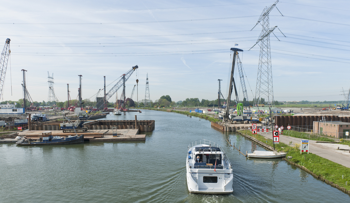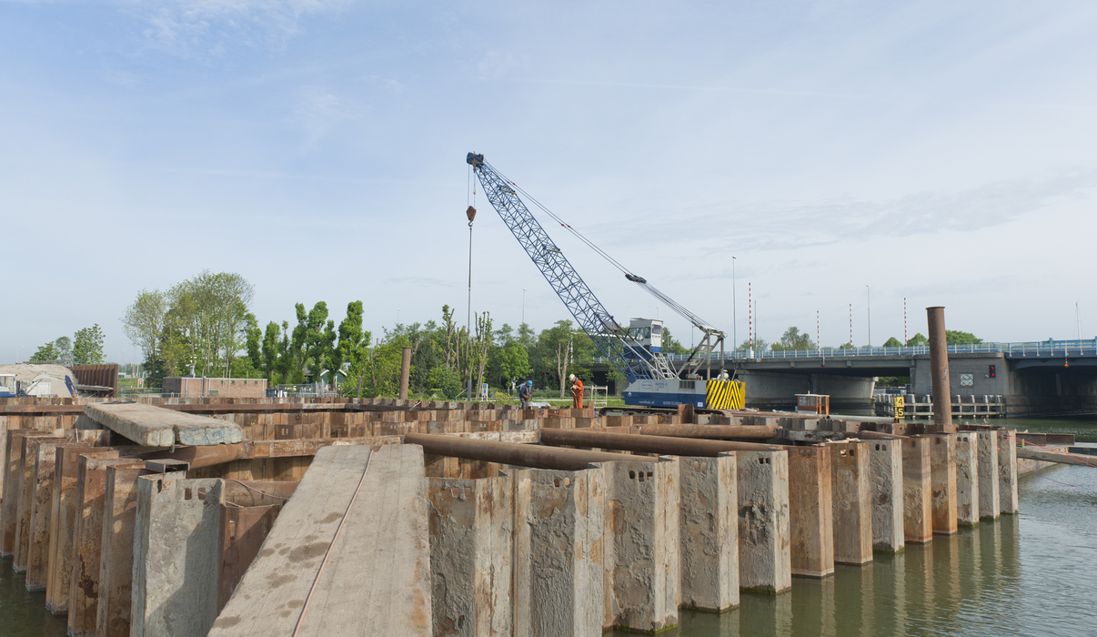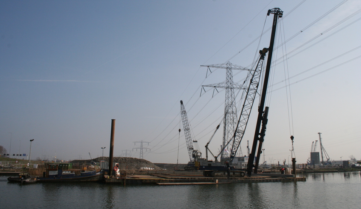 In opdracht van Bouwcombinatie K. Dekker en Ooms Construction voert Gebr. van ’t Hek in onderaanneming het heiwerk uit voor de nieuwe Spieringbrug over de Vecht bij Muiden.