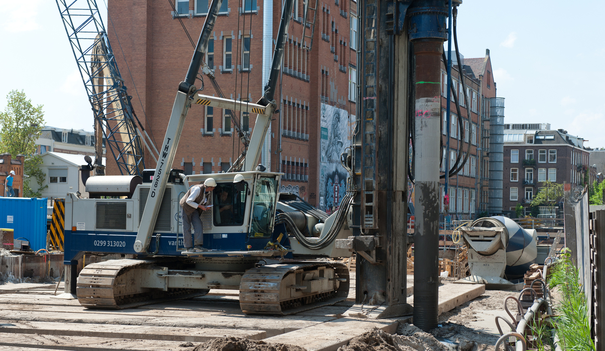 Voor de parkeergarage onder het 'theater' van het nieuwe Raadhuis Hotel aan de Amstel voert Gebr. van 't Hek alle funderingswerkzaamheden uit in onderaanneming van Kondor Wessels.