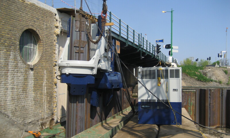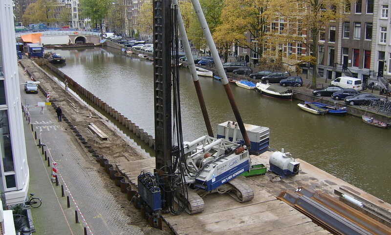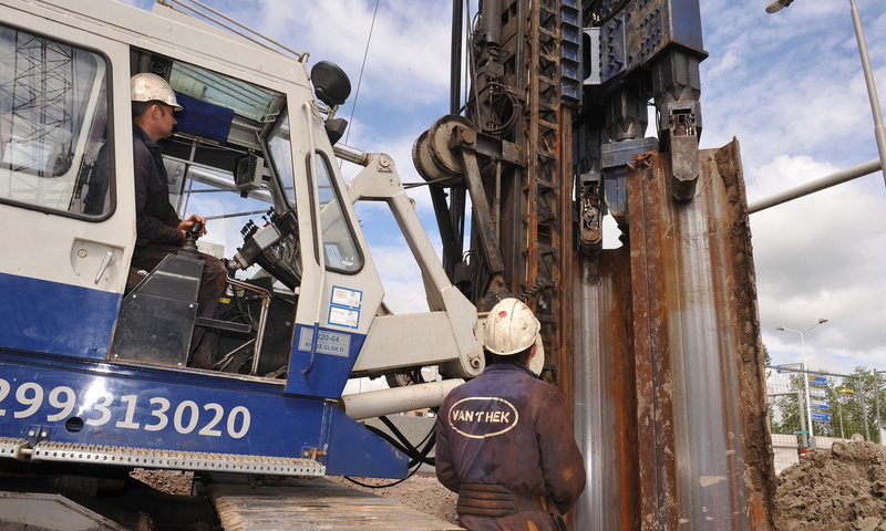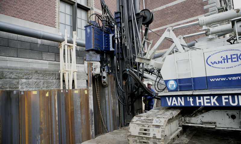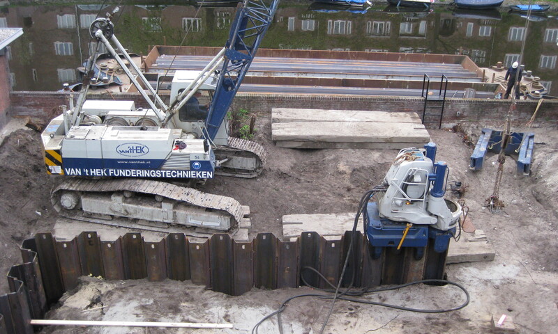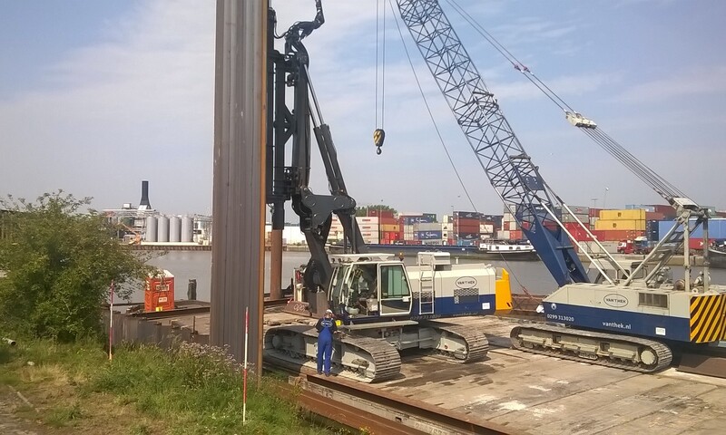 Gebr. van 't Hek heeft ook de hijsapparatuur in huis die nodig is om de silent piler te positioneren en damwandprofielen in te hijsen. Een damwand kan zo in segmenten trillingsvrij worden aangebracht.
