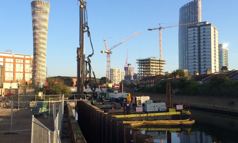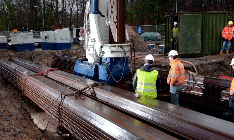 Stalen damwand drukken met silent piler.