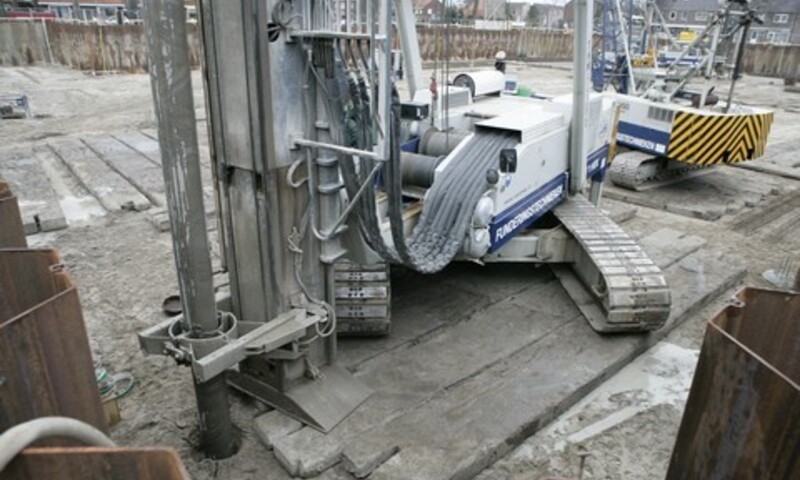 Een boormotor brengt deze schroevend op diepte, waarna de wapening en de betonspecie worden aangebracht. Ten slotte wordt de hulpbuis oscillerend uitgetrokken, waarbij de schroefpunt in de grond achterblijft.